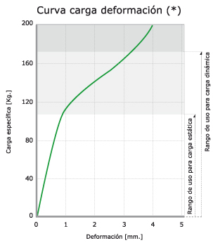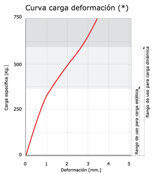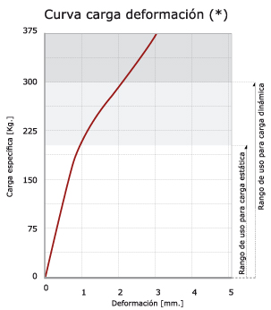 En base a la relación carga/apoyo se elegirá el color que optimice la amortiguación a impactos y vibraciones.