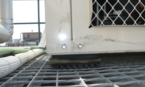 La mayoría de los problemas de ruido debidos a transmisión estructural (vibraciones) se pueden solucionar con apoyos de un material elástico, económico y muy efectivo. Después de muchos años de experiencia, nuestro departamento de I+D, ha desarrollado un nuevo sistema de silent-block (muelle-amortiguador) para calderas, climatizadoras, enfriadoras, roof-top, grupos electrógenos y otras unidades de gran tamaño: Ala-Din.
