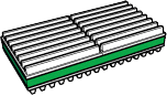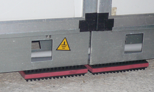 La dentadura de las dos superficies de apoyo son útiles para suavizar y equilibrar la descarga con grúa de la máquina. Su alma está compuesta por poliuretano micro celular, con una gama de colores que define diferentes características elásticas de carga.
